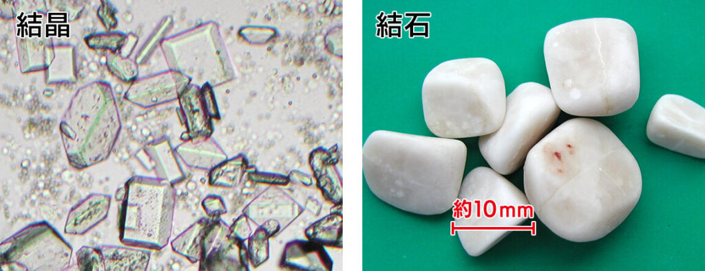 ▶︎結晶:三〜六角柱型、結石:白色〜淡黄色で表面滑らか