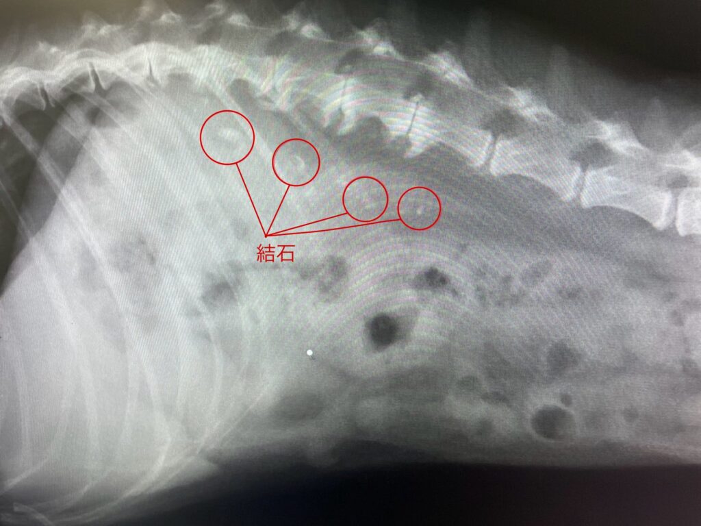 →結石の場所やその子の状態により適切な部位を切開し結石を摘出する。