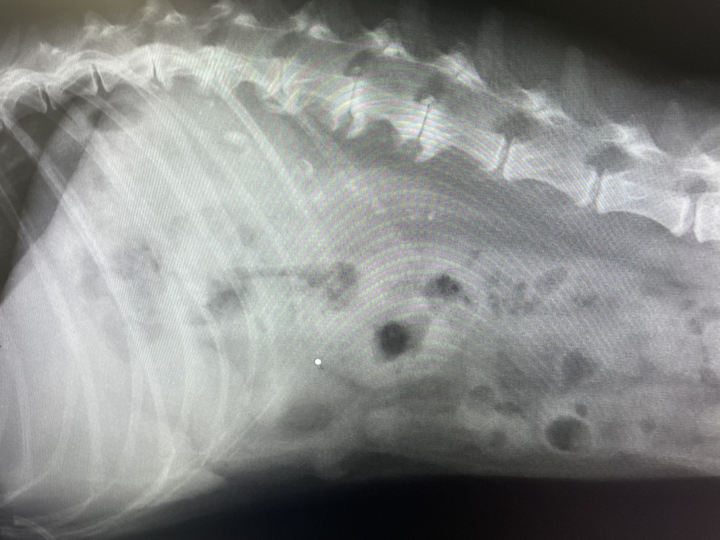 左尿管内に結石が見られたため、