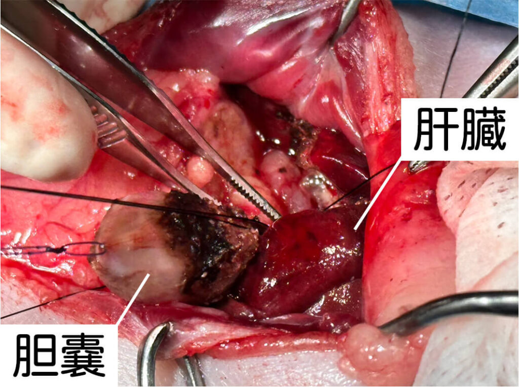 くっついている胆嚢を肝臓から丁寧に剥がしていきます。